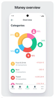 Sync bank accounts, e-wallets (PayPal), and crypto (Coinbase) into the budget app for real-time control. See balances, categories, and every movement of your money so you always know where money goes and what’s left.