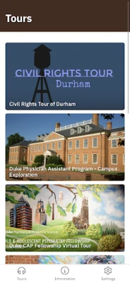 Tours of Duke's home in Durham, North Carolina and around the world.