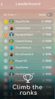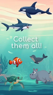 Unlock a variety of charming aquatic characters by progressing the game, including a turtle, seal, hippo, fish, shark, and orca.